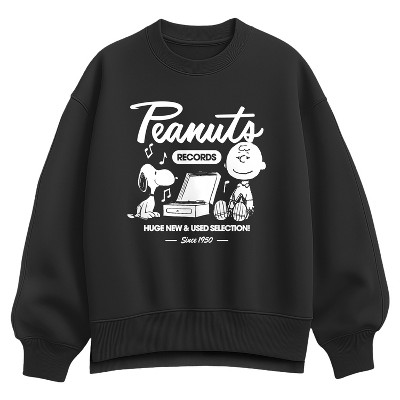 Women's - Peanuts - Snoopy Charlie Brown Records Oversized Fleece Crew Sweatshirt
