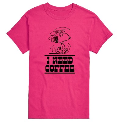 Men's - Peanuts - I Need Coffee Snoopy -Men's Short Sleeve Graphic T-Shirt Short Sleeve Graphic T-Shirt