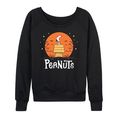 Women's - Peanuts - Snoopy Halloween Dog House Lightweight French Terry Wide Neck Long Sleeve Graphic Shirt