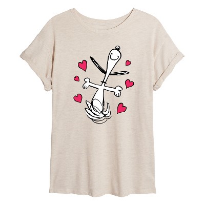 Women's - Peanuts - Snoopy Dancing Hearts Oversized Graphic T-Shirt