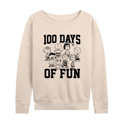 Women's - Peanuts - 100 Days Of Fun Lightweight French Terry Wide Neck Long Sleeve Graphic Shirt
