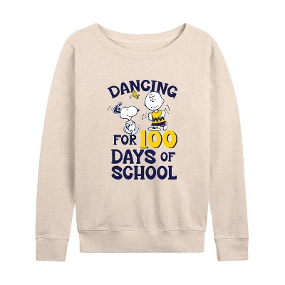 Women's - Peanuts - Dancing For 100 Days Of School Lightweight French Terry Wide Neck Long Sleeve Graphic Shirt