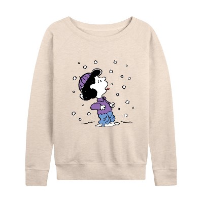 Women's - Peanuts - Lucy Snow Lightweight French Terry Wide Neck Long Sleeve Graphic Shirt