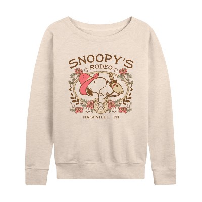 Women's - Peanuts - Snoopy Western Lightweight French Terry Wide Neck Long Sleeve Graphic Shirt