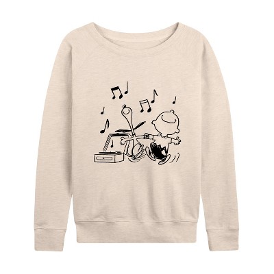 Women's - Peanuts - Snoopy Dancing Lightweight French Terry Wide Neck Long Sleeve Graphic Shirt