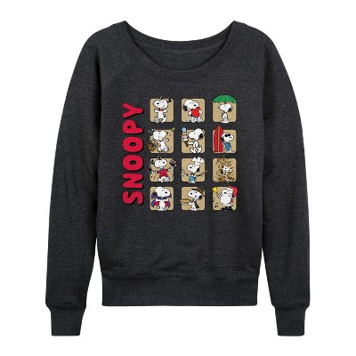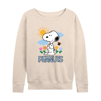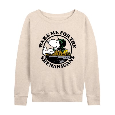 Women's - Peanuts - Snoopy Crew Lightweight French Terry Wide Neck Long Sleeve Graphic Shirt