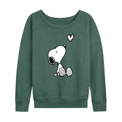 Women's - Peanuts - Heart Throb Snoopy Lightweight French Terry Wide Neck Long Sleeve Graphic Shirt