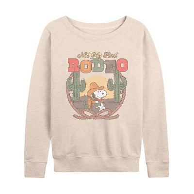 Women's - Peanuts - Snoopy Western Lightweight French Terry Wide Neck Long Sleeve Graphic Shirt
