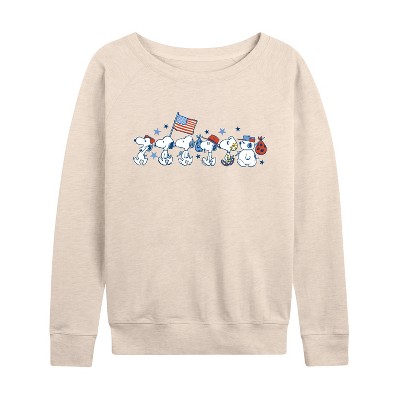 Women's - Peanuts - Snoopy Americana Lineup Lightweight French Terry Wide Neck Long Sleeve Graphic Shirt