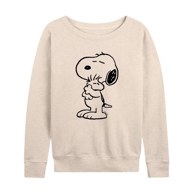 Women's - Peanuts - Snoopy Crew Lightweight French Terry Wide Neck Long Sleeve Graphic Shirt
