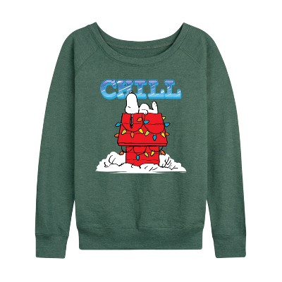 Women's - Peanuts - Snoopy Chill Lightweight French Terry Wide Neck Long Sleeve Graphic Shirt