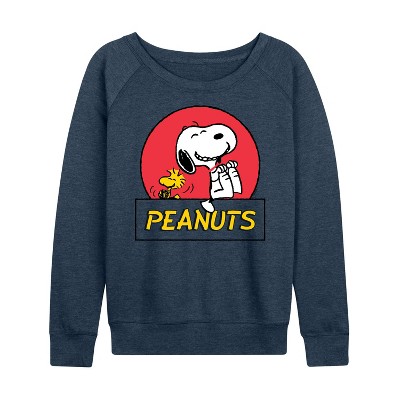 Women's - Peanuts - Snoopy Woodstock Circle Lightweight French Terry Wide Neck Long Sleeve Graphic Shirt