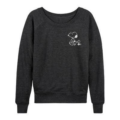 Women's - Peanuts - Snoopy And Woodstock Lightweight French Terry Wide Neck Long Sleeve Graphic Shirt