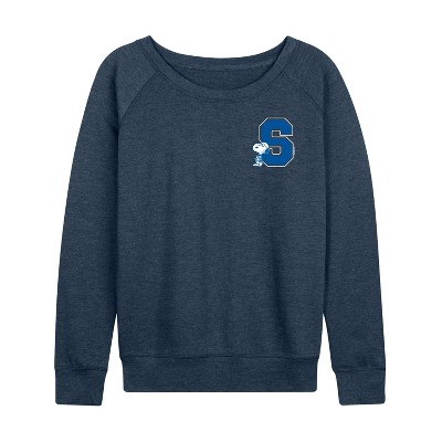 Women's - Peanuts - Snoopy Football Lightweight French Terry Wide Neck Long Sleeve Graphic Shirt