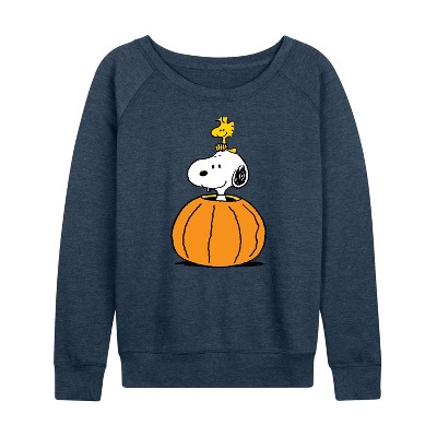 Women's - Peanuts - Snoopy Pumpkin Patch Lightweight French Terry Wide Neck Long Sleeve Graphic Shirt