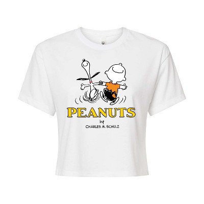 Women's - Peanuts - Charlie Snoopy Dancing Cropped Graphic T-Shirt