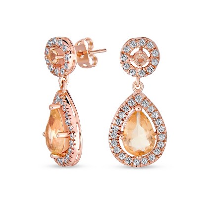 Bling Jewelry Classic Jewelry Triple Round Pave CZ Halo Long Linear Pear Shape Dangle Teardrop Chandelier Earrings Yellow Gold Silver Plated