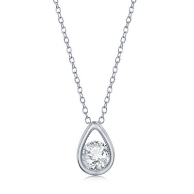 Simona Sterling Silver 'April Birthstone' Pear-shaped Necklace - White Topaz - White - 16+2 Inch