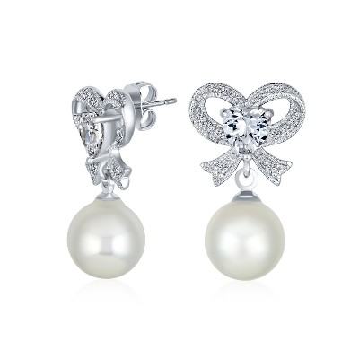 Bling Jewelry Victorian Dangle Chandelier Earrings with CZ Pearl and Bow Design
