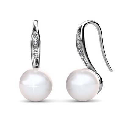 Cate & Chloe Kyra 18K White Gold Plated Shell Pearl Drop Earrings with Swarovski Crystals, Elegant Dangle Earrings Gift for Women