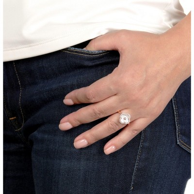 Lavari Jewelers Women's Flora Halo Yellow Gold Plated Sterling Silver Flower Ring with Cubic Zirconia - Available in Malachite and Mother of Pearl