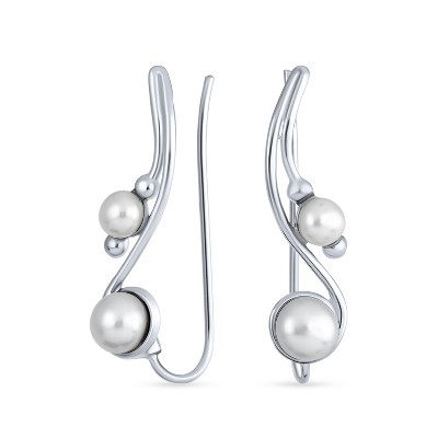 Bling Jewelry White Freshwater Pearl Ear Cuff Cartilage Climbers 14K Gold Plated Sterling Silver