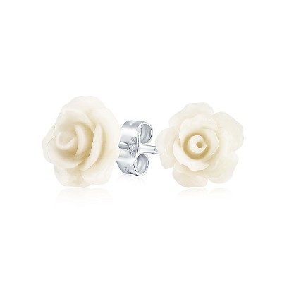 Bling Jewelry Romantic 3D Carved Flower Pink Peach Rose Stud Earrings Lightweight 10MM