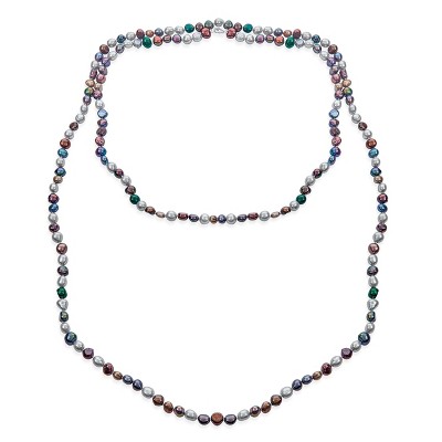 Lavari Jewelers Women's Sterling Silver 6-7MM Freshwater Black Pearl Necklace
