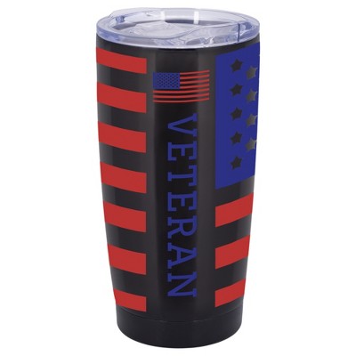 100 North 20 Ounce Stainless Steel On the Go Travel Tumbler With Push Top Lid, American Flag Veteran Black