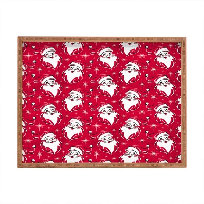 Heather Dutton Tis The Season Retro Santa Red Rectangular Bamboo Tray - Deny Designs