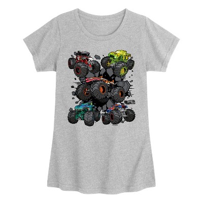Girls' - Hot Wheels - Monster Truck Grids Fitted Short Sleeve Graphic T-Shirt