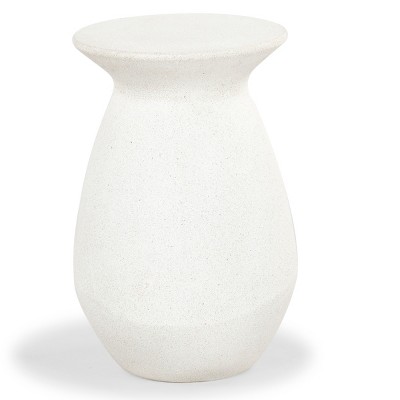 SEVOBAL Outdoor Cement End Table Small Round Garden Accent Table Drum Shape Side Table for Patio and Indoor Use, White, 18.7"*18.7"*21.06"