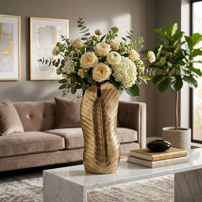 Vase Aluminum Leaf Textured Design Home Office Bedroom Living Room Decor - 16" Gold & Metallic