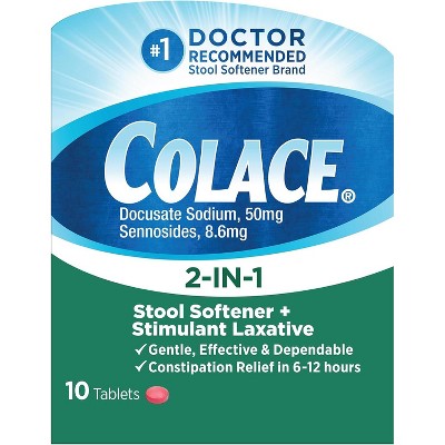 Colace - 2-IN-1 Stool Softener & Stimulant Laxative Tablets, 10 Count