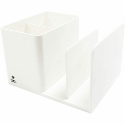 Business Source - Multifunctional Pen Cup Organizer - 2 Compartments - ABS Plastic - White - 3.8 in. x 6.1 in. x 4.7 in. - 1 Each