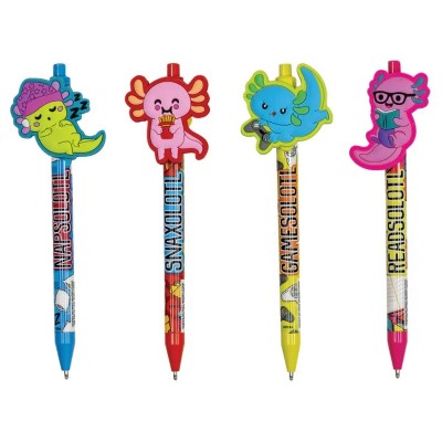 Adorable Axolotl Themed Clip Pens (4 Pack) - Napsolotl, Readsolotl & More! Black Ink, Retractable (5.75" Long)