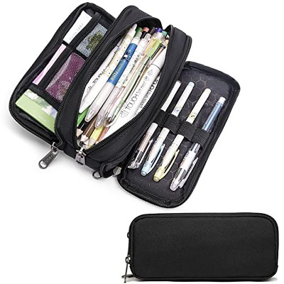 Unique Bargains Large Capacity Three-grid Stationery Bags with Zipper Handle for Office