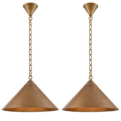LamQee Vintage Brushed Gold Cone Pendant Light Hanging Lamp Adjustable Height Lighting Industrial Ceiling Light