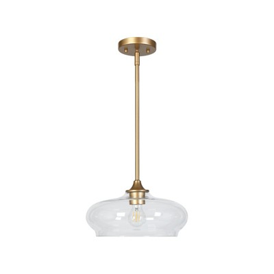 9.75" Noah Pillar Shade Pendant Light Gray - River of Goods: Brushed Gold-Finish, Adjustable Height