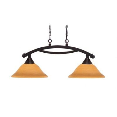 Toltec Lighting Bow 2 - Light Island Pendant Light in Dark Granite with 12" Cayenne Linen Shade