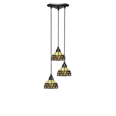 Toltec Lighting Europa 3 - Light Pendant in Matte Black with 7'' Roman Jewel Art Glass Shade