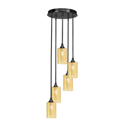 Toltec Lighting Europa 3 - Light Pendant in Matte Black with 5.5" Fluted Teal Crystal Shade