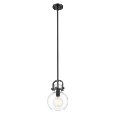 Toltec Lighting Elegante 1 - Light Pendant in Matte Black with 4.5" Square Clear Bubble Shade