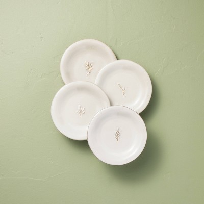 Set of 4 6.5" Stoneware Embossed Leaf Appetizer Plates Sour Cream - Hearth & Hand™ with Magnolia