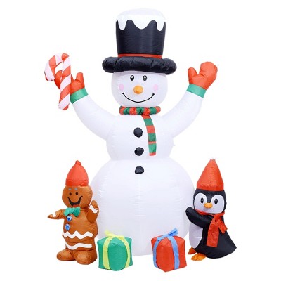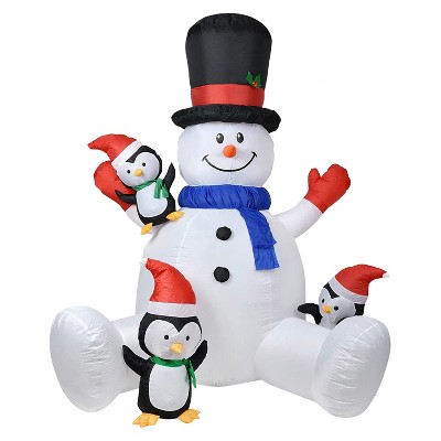 ChicFurnit Inflatable Holiday Decorations Santa and Penguins on Ice Slide with Snowman for Outdoor Christmas, Multicolored, 17.97"*14.04"*14.04"