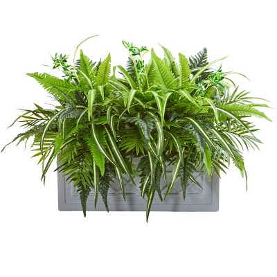 Nearly Natural Mixed Greens and Fern Artificial in Stone Planter