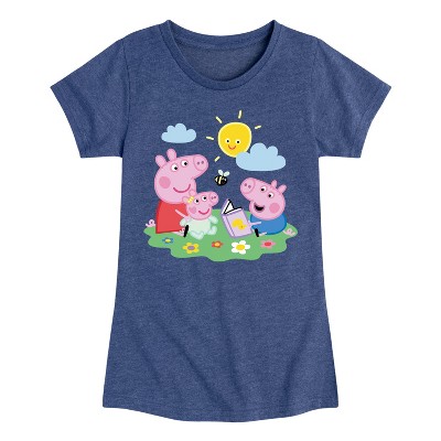 Girls' - Peppa Pig - Peppa George Baby Reading Fitted Short Sleeve Graphic T-Shirt
