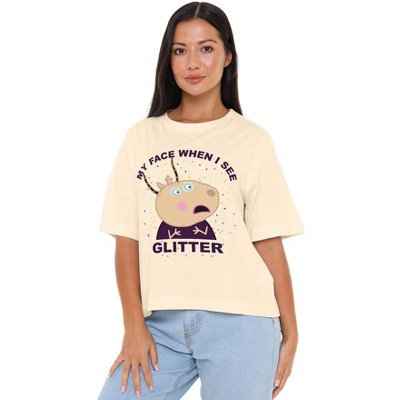 Women's Peppa Pig Madame Gazelle Glitter Boxy Cropped T-Shirt