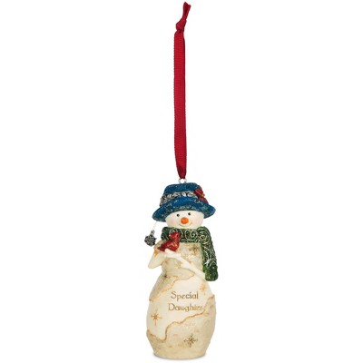 Pavilion Gift Company - Daughter - 4" Snowwoman Holding a Bird Ornament - Tree Ornaments