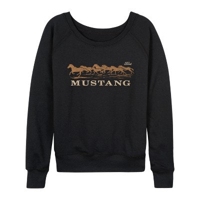Women's - Ford - Mustang Running Horses Lightweight French Terry Wide Neck Long Sleeve Graphic Shirt